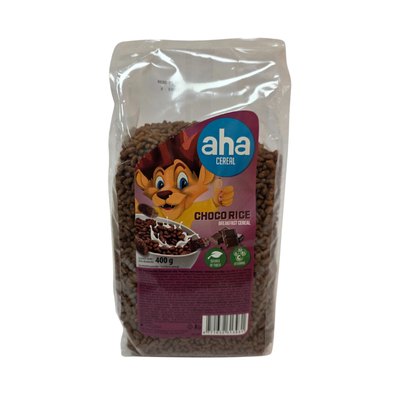 SUDEDAMOSIOS DALYS: ryžių miltai (32%), KVIETINIAI miltai, cukrus, gliukozės-fruktozės sirupas, kakavos milteliai (4,3%), karamelizuotas cukrus, rapsų aliejus, liesi kakavos milteliai (0,7%), SALYKLO EKSTRAKTAS (yra GLITIMO), šokoladas (0,5%) (cukrus, kakavos masė, kakavos sviestas, emulsiklis lecitinai (SOJŲ), vanilino kvapioji medžiaga), valgomoji druska, emulsiklis lecitinai (rapsų), vitaminų mišinys (DL-a-tokoferilacetatas, L-askorbo rūgštis, tiamino mononitratas, riboflavinas, nikotinamidas, piridoksino hidrochloridas, pteroilmonoglutamo rūgštis, cianokobalaminas, D-biotinas, kalcio D-pantotenas), kvapiosios medžiagos (vanilino, šokolado). Produkte gali būti PIENO ir jo produkto pėdsakų.