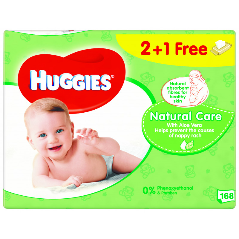Drėgnos servetėlės Huggies 2+1Natural 168vnt