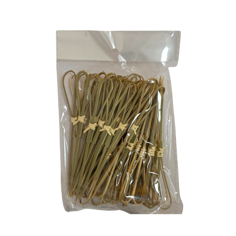 Stilingi natūralaus bambuko smeigtukai su dekoratyvine kilpute – puikus pasirinkimas užkandžiams, vaisiams, mėsos ar sūrio vėrinukams. Jie ne tik praktiški, bet ir suteikia stalo serviravimui jaukumo bei estetikos. Tinka šventėms, piknikams, furšetams ar kasdieniam naudojimui.