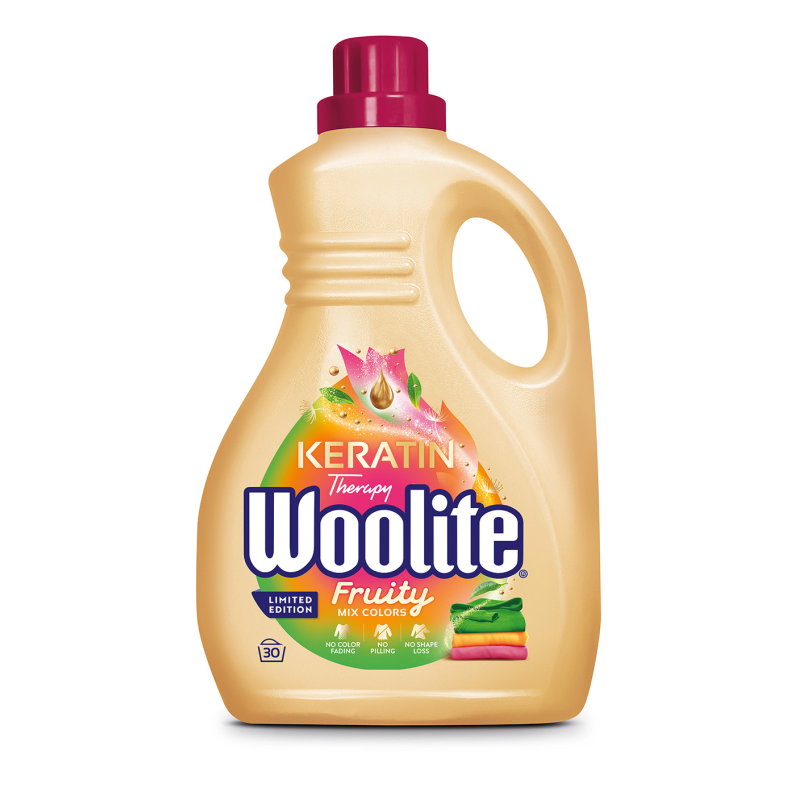 Skystas spalvotų drabužių skalbiklis „Woolite Mix Colors“ su keratinu. Jūsų mėgstami drabužiai lyg nauji. Saugo drabužius nuo blukimo , pumpuravimosi ir formos praradimo..