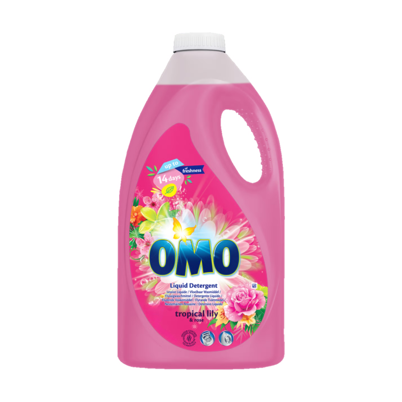 OMO skystas skalbiklis „Tropical Lily & Rose“ – efektyvus skystas skalbiklis, kuris užtikrina puikią švarą ir suteikia skalbiniams ilgai išliekantį tropinių lelijų ir rožių aromatą. Padeda išlaikyti ryškias spalvas, pašalina kasdienius nešvarumus ir suteikia gaivumo pojūtį iki 14 dienų.