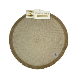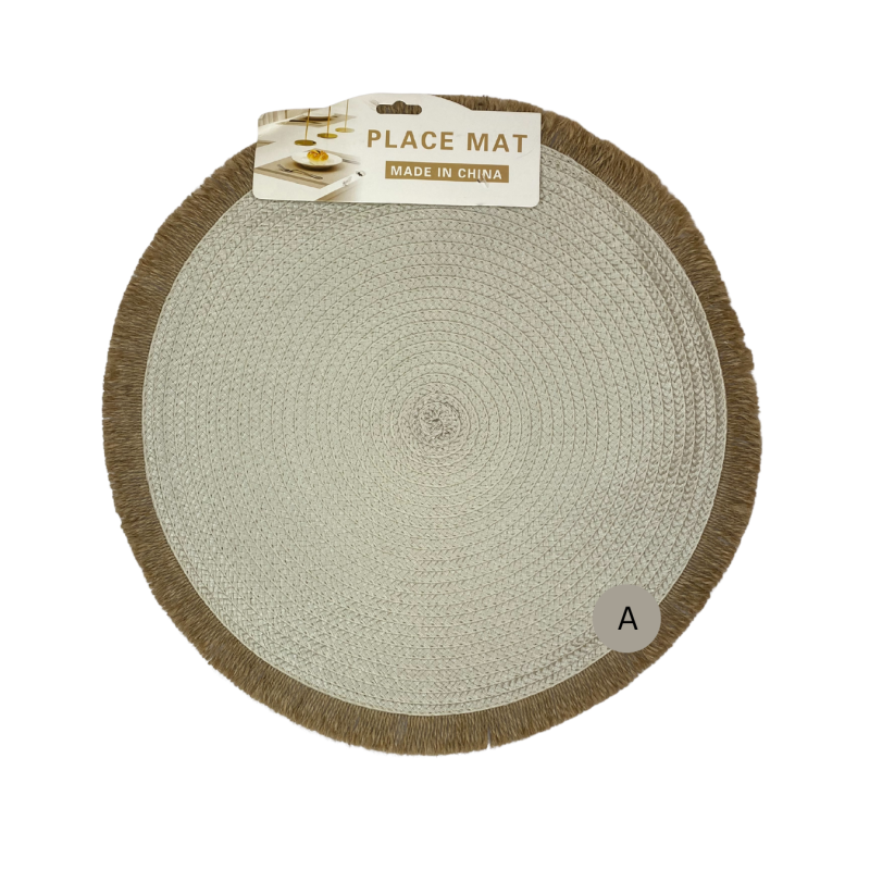 Apvalus stalo padėkliukas, pagamintas iš tvirtos tekstilinės medžiagos, su dekoratyviniais kutais aplink kraštą. Neutralios spalvos ir minimalistinio dizaino, lengvai priderinamas prie įvairių stalo serviravimo stilių – tiek kasdieniam, tiek šventiniam naudojimui.