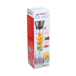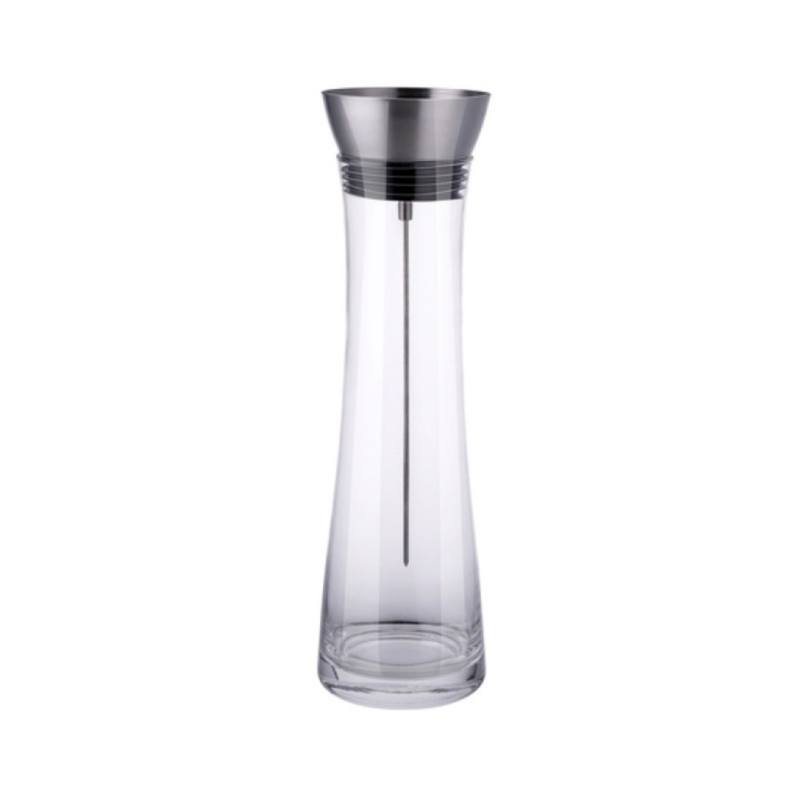 Elegantiška ir funkcionali stiklinis grafinas, skirtas patogiam vandens, sulčių, vyno ar kitų gėrimų patiekimui. Grakšti, siaurėjanti forma suteikia modernų įvaizdį ir leidžia lengvai laikyti rankoje. Metalinis dangtelis su integruotu filtru padeda patogiai pilti gėrimus bei sulaikyti ledo kubelius ar vaisių gabalėlius.