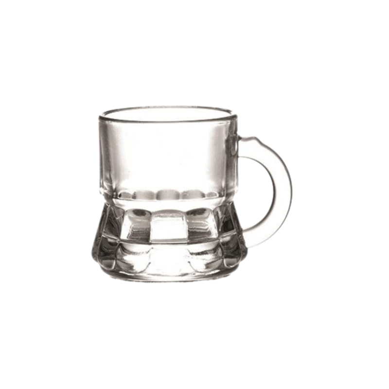 Kompaktiškų ir tvirtų stiklinių puodelių rinkinys su rankenėle, skirtas labai mažoms karštų ar stiprių gėrimų porcijoms. Storas, dekoratyvus dugnas suteikia stabilumo, o patogi rankenėlė leidžia saugiai laikyti net karštą gėrimą. Puikiai tinka espresui, turkiškai kavai, stipriesiems gėrimams ar degustacijoms.