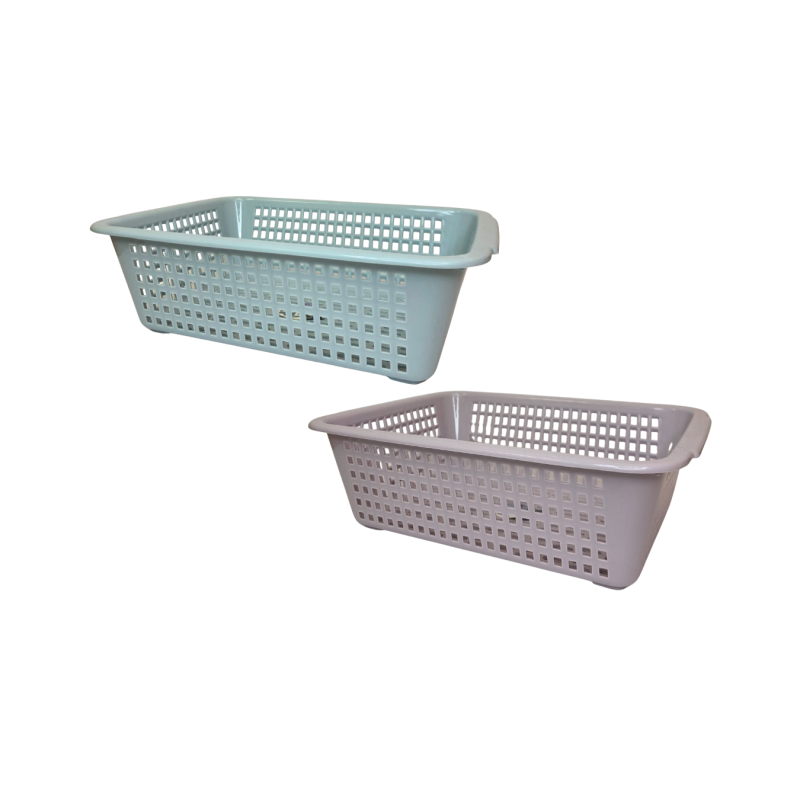 Lengvas ir patvarus plastikinis krepšelis su skylutėmis ventiliacijai. Tinkamas įvairiems daiktams laikyti ir tvarkai palaikyti. Patogus naudoti buityje – lengvai plaunamas ir užima mažai vietos.