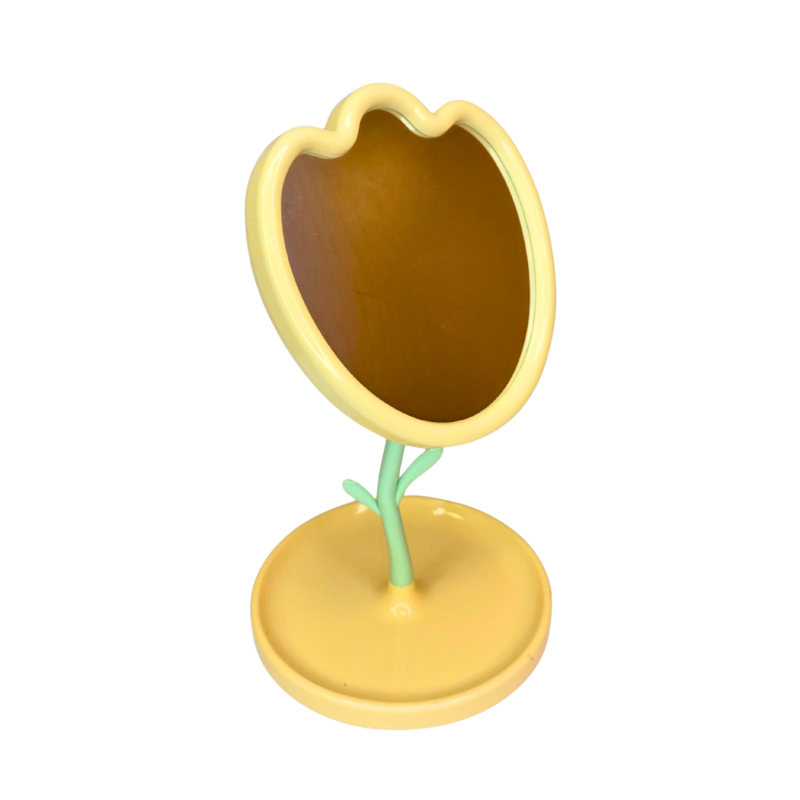 Originalaus dizaino stalinis veidrodis, sukurtas gėlės formos motyvu. Žaismingas ir stilingas akcentas, kuris puikiai tiks kosmetiniam stalui, vaikų kambariui ar kaip dekoratyvinė interjero detalė. Stabilus pagrindas užtikrina patogų naudojimą kasdien.