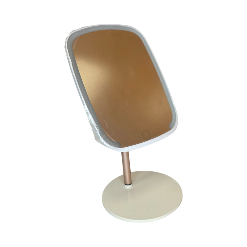 Modernus stalo veidrodis su LED apšvietimu, kuris puikiai tinka makiažui, odos priežiūrai ar kasdieniam pasiruošimui.
