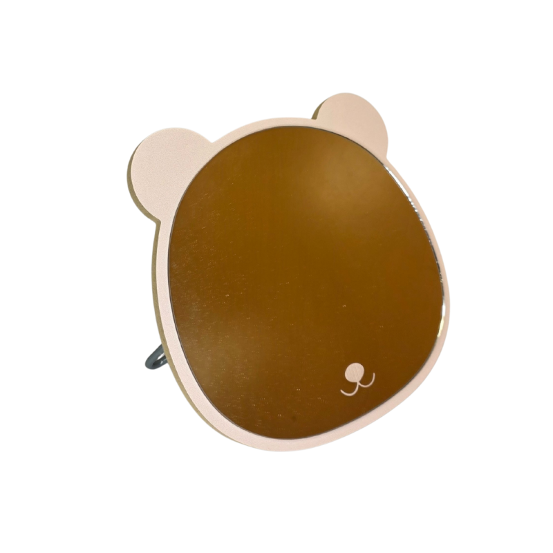 Žaismingas ir mielas stalinis veidrodis, kurio forma primena meškiuko galvą – puikus pasirinkimas vaikų kambariui, kosmetikos staliukui ar kaip dekoratyvinė interjero detalė. Kompaktiškas, lengvas ir su patogiu stovu, todėl galima lengvai pastatyti ant bet kurio paviršiaus.