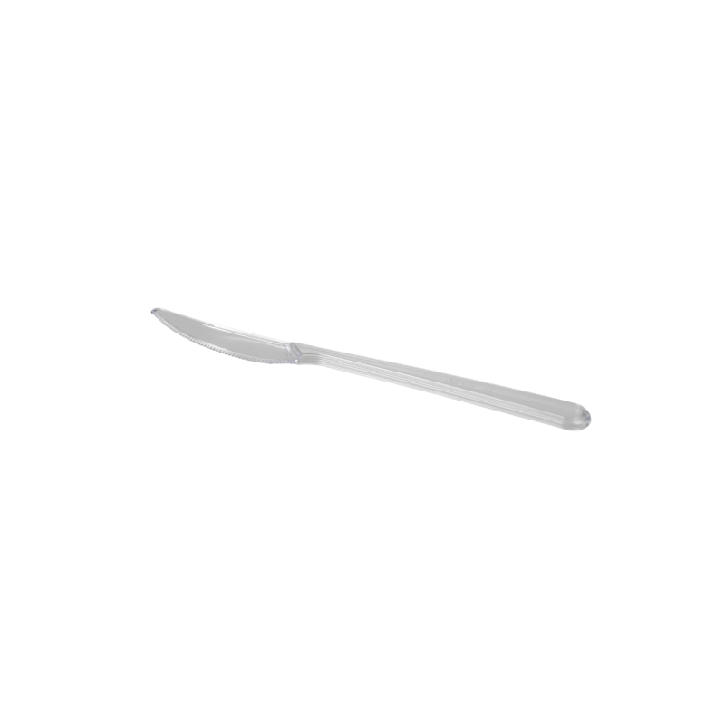 Aukštos kokybės daugkartiniai 18 cm ilgio skaidrūs peiliai — praktiškas ir estetiškas pasirinkimas tiek kasdieniam naudojimui, tiek renginiams. Pagaminti iš tvirto plastiko, todėl yra atsparūs lūžimui ir tinkami naudoti ne vieną kartą.