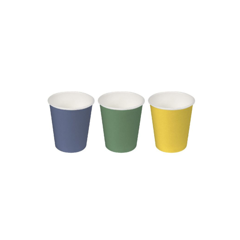 Maži, spalvoti 50 ml talpos popieriniai puodeliai – puikus pasirinkimas degustacijoms, užkandžiams, padažams, kavos ragavimui ar vaikų šventėms. Patogūs, tvirti ir vienkartiniai.