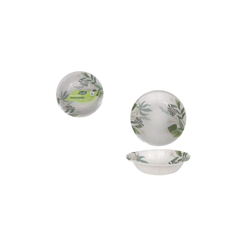 Biologiškai suyrantys popieriniai dubenėliai su botaniniu dizainu, 450 ml, 6 vnt