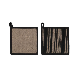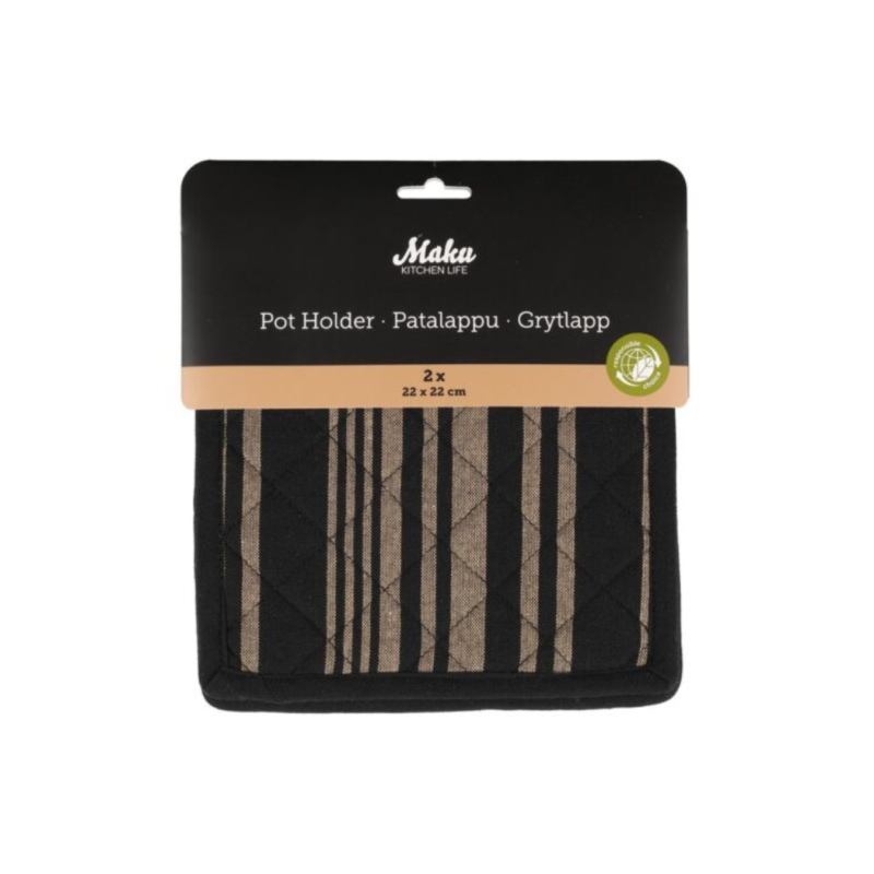 Praktiškos ir stilingos puodkėlės, skirtos karštiems puodams, keptuvėms ar kepimo indams saugiai laikyti. Storas, dygsniuotas audinys patikimai apsaugo paviršius nuo karščio, o kilpelė leidžia patogiai pakabinti po naudojimo.