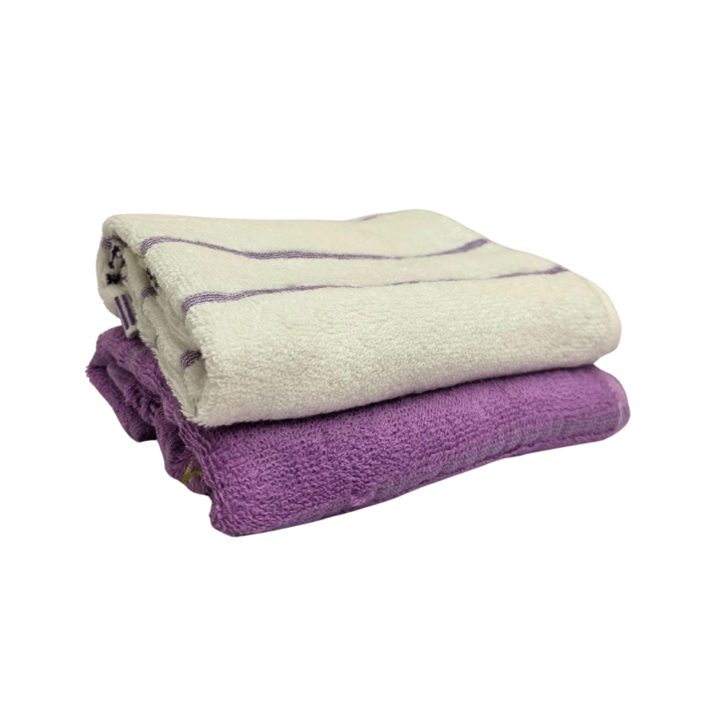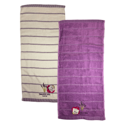 Stilingi ir švelnūs rankšluosčiai su levandų siuvinėjimu ir užrašu „Beautiful Skin Paris“. Šie rankšluosčiai ne tik puoš jūsų vonios kambarį, bet ir užtikrins komfortą bei puikų drėgmės sugėrimą.