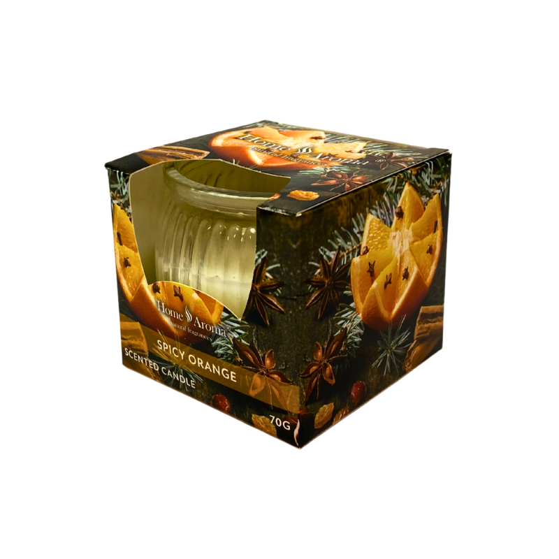 Aromatinė žvakė stikliniame indelyje, skleidžianti šiltą ir jaukų aštrios apelsino žievelės, gvazdikėlių ir žiemos prieskonių kvapą. Puikus pasirinkimas namams, kuriuose norisi sukurti jaukią, šventinę ar rudenišką atmosferą.