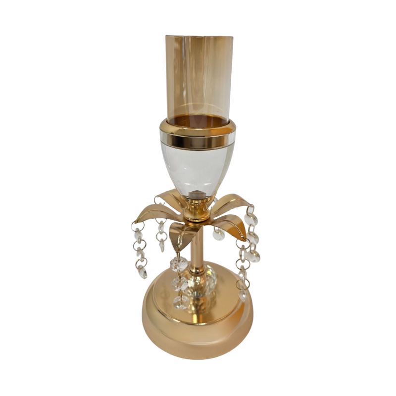 Elegantiška ir prabangiai atrodanti žvakidė, puošta dekoratyviniais kristalo pakabukais, suteiks jūsų interjerui išskirtinio žavesio. Viršuje esantis cilindro formos stiklas užtikrina saugų žvakės degimą ir estetinį vaizdą.